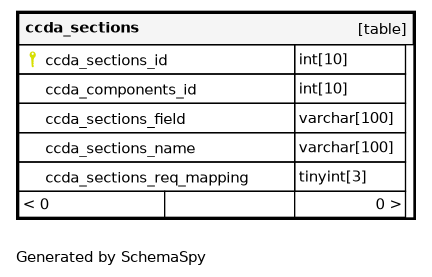 | PRIMARY | Primary key | Asc | ccda_sections_id |
