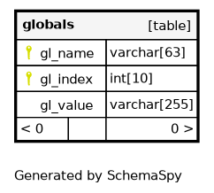 | PRIMARY | Primary key | Asc/Asc | gl_name + gl_index |