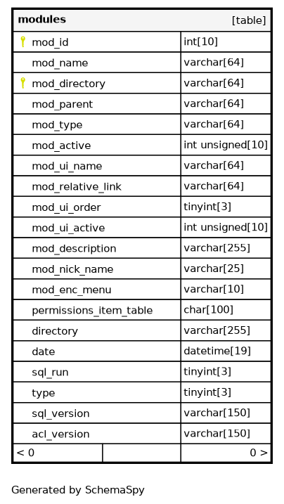 PRIMARY Primary key Asc/Asc mod_id + mod_directory